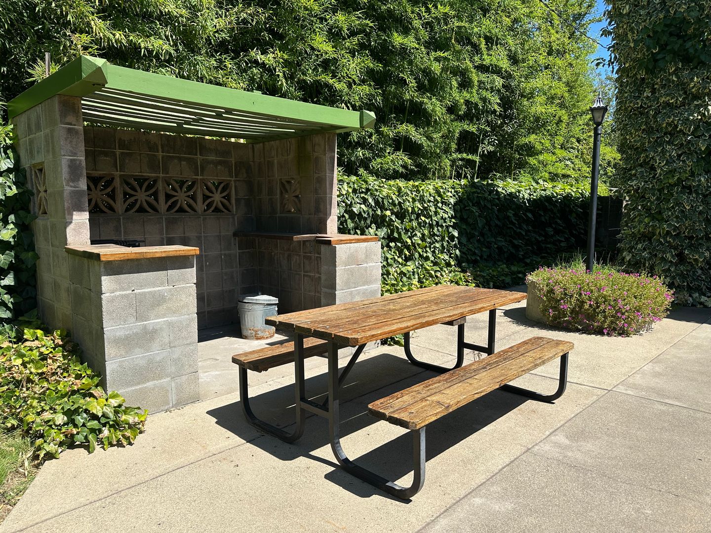 Additional features include on-site coin-operated laundry, a small storage closet, and one off-street parking space. Landscape maintenance in the shared courtyard is provided. Community BBQ area, bike rack.