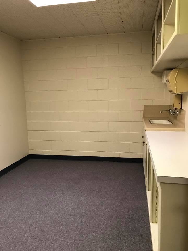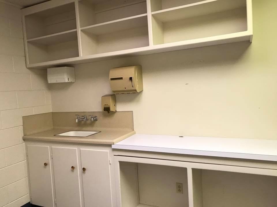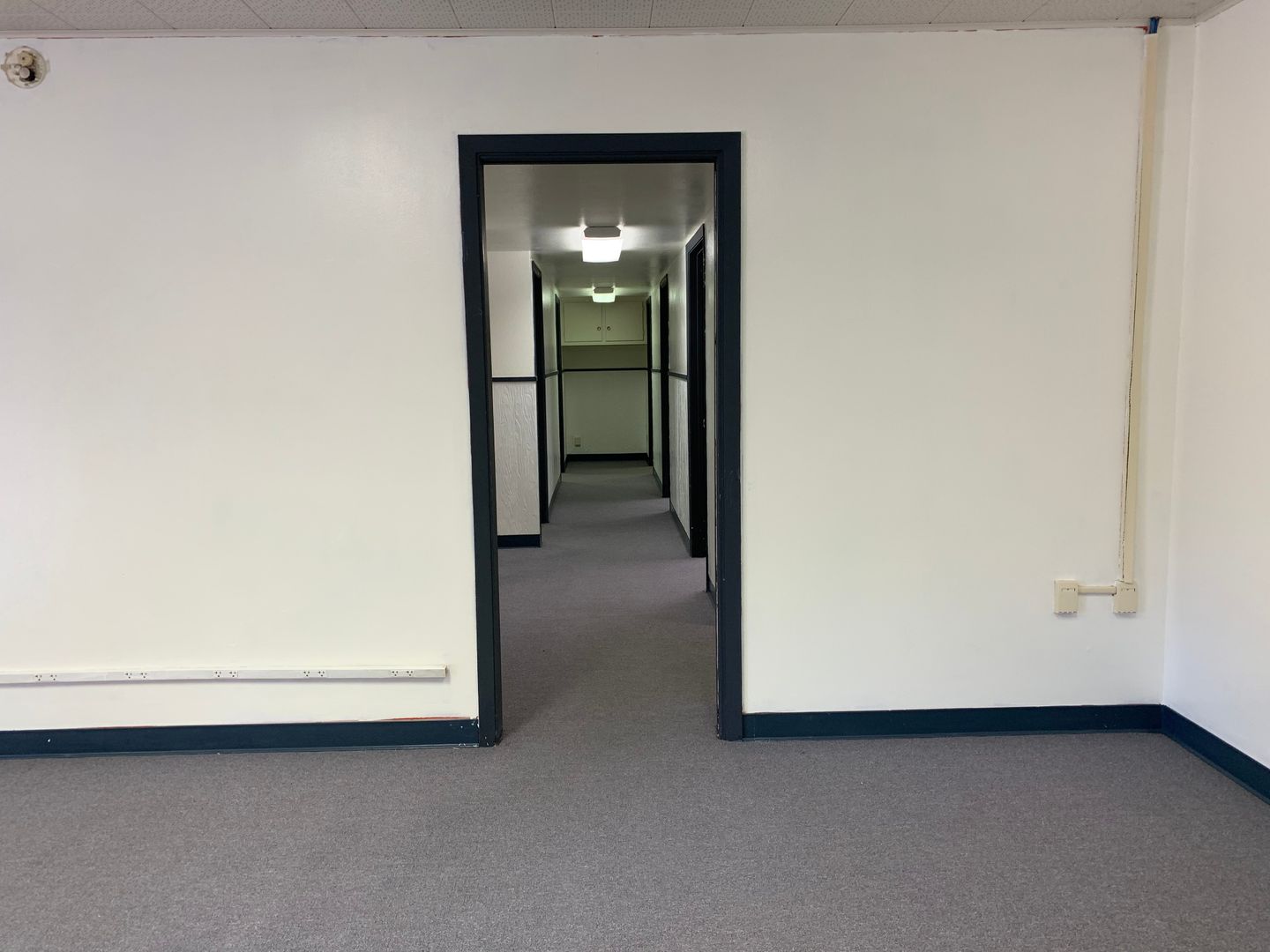 Enter inside to a large reception area ready to welcome clients and guests. Beyond that, you’ll find a spacious room that could easily serve as a conference room or shared workspace, plus three private offices for focus and productivity. The suite includes a break room equipped with a sink, countertop, and cabinets, making it easy to grab a quick lunch or coffee. There’s also a convenient private bathroom and an additional storage room for supplies and files.