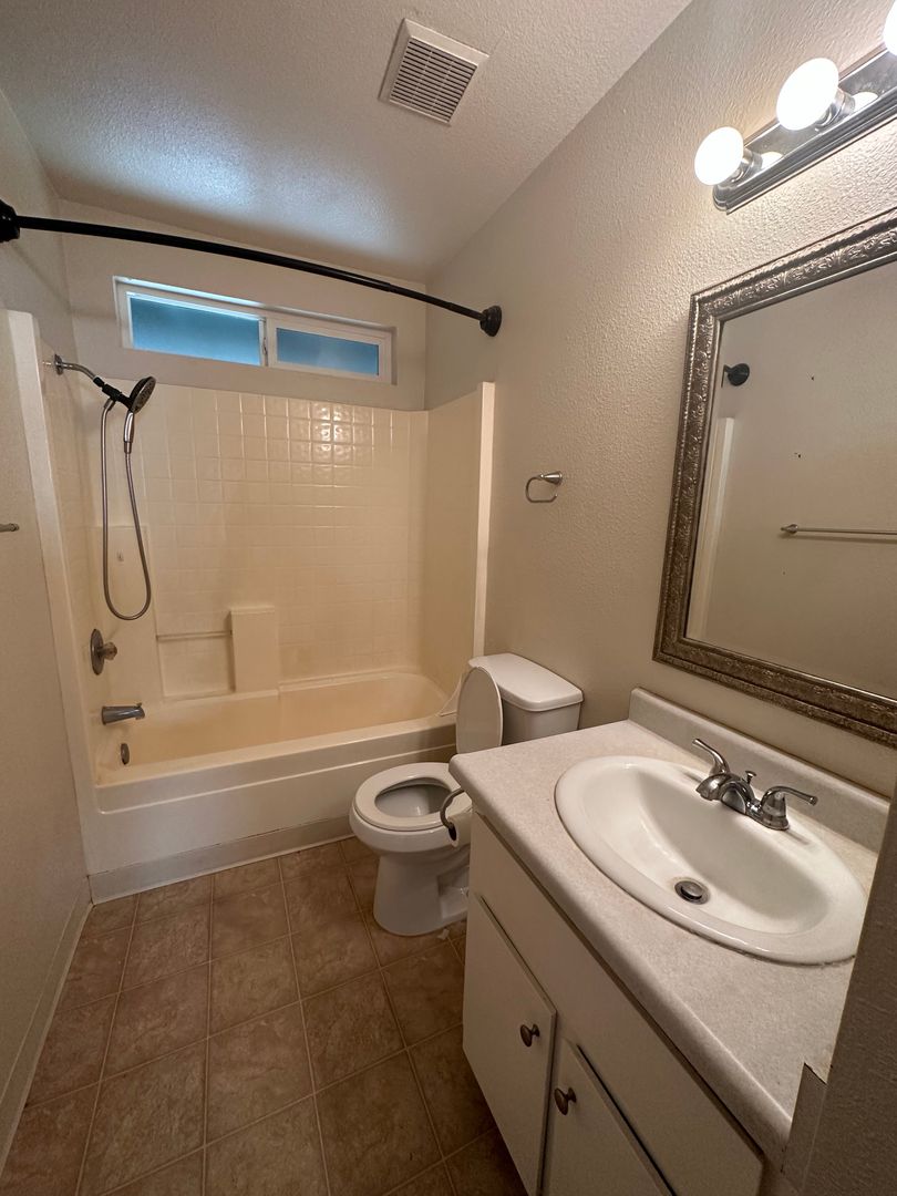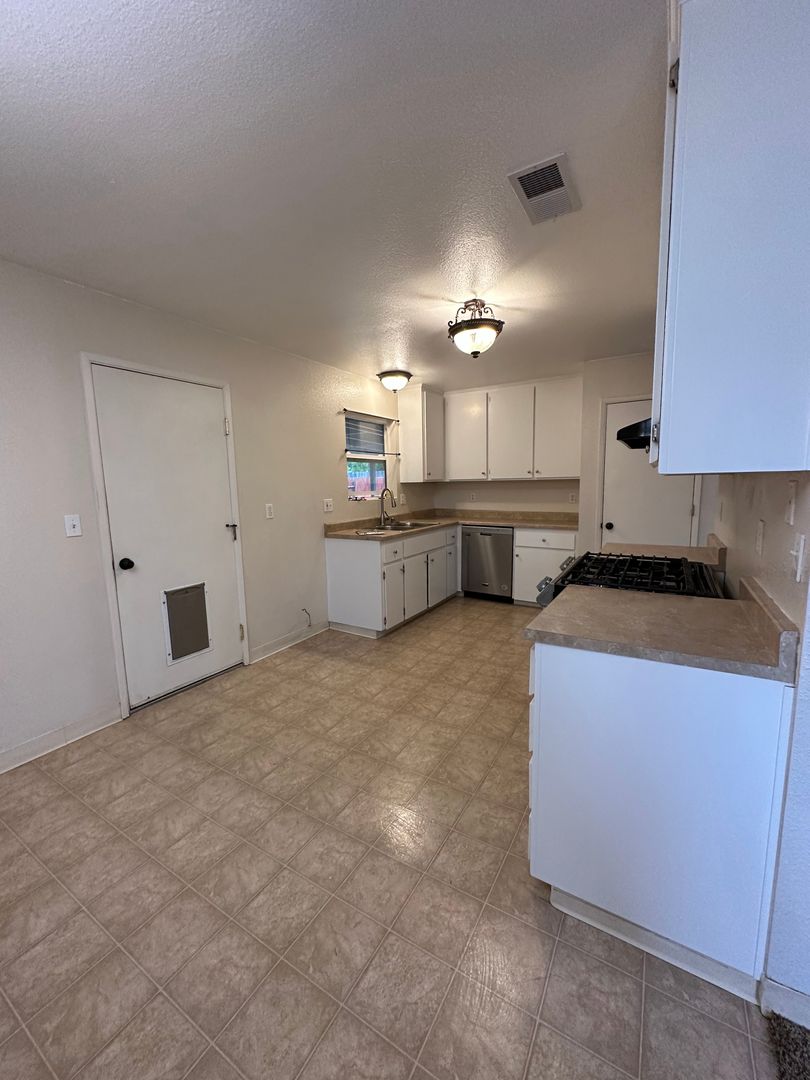This home is a must see!!! We love this cute well maintained home in a convenient Anderson location near the Fairgrounds, shopping and schools. In through the beautiful updated front door you will enter the living room with large windows, carpeting and ceiling fan. To the side is the eat in dining area with chandelier light, front facing window and lino flooring throught dining area and kitchen. Kitchen has timeless white cabinetry, neutral countertops, gas range, dishwasher and stainless sink. Down the hall is a full bathroom with tub and three spacious bedrooms. Primary bedroom has attached full bathroom with tub. Great backyard for enjoying the outdoors with a covered patio, large lawn area and full fencing. Mature dog considered on case by case basis (sorry no puppies or dangerous breeds) No cats. Central heat and air to keep you comfortable all year long. Washer and dryer included in attached garage (no warranty). Tenant to supply their own refrigerator. One year lease. No RV parking. Give us a call, 530-226-5300, we would love to show you around this property!